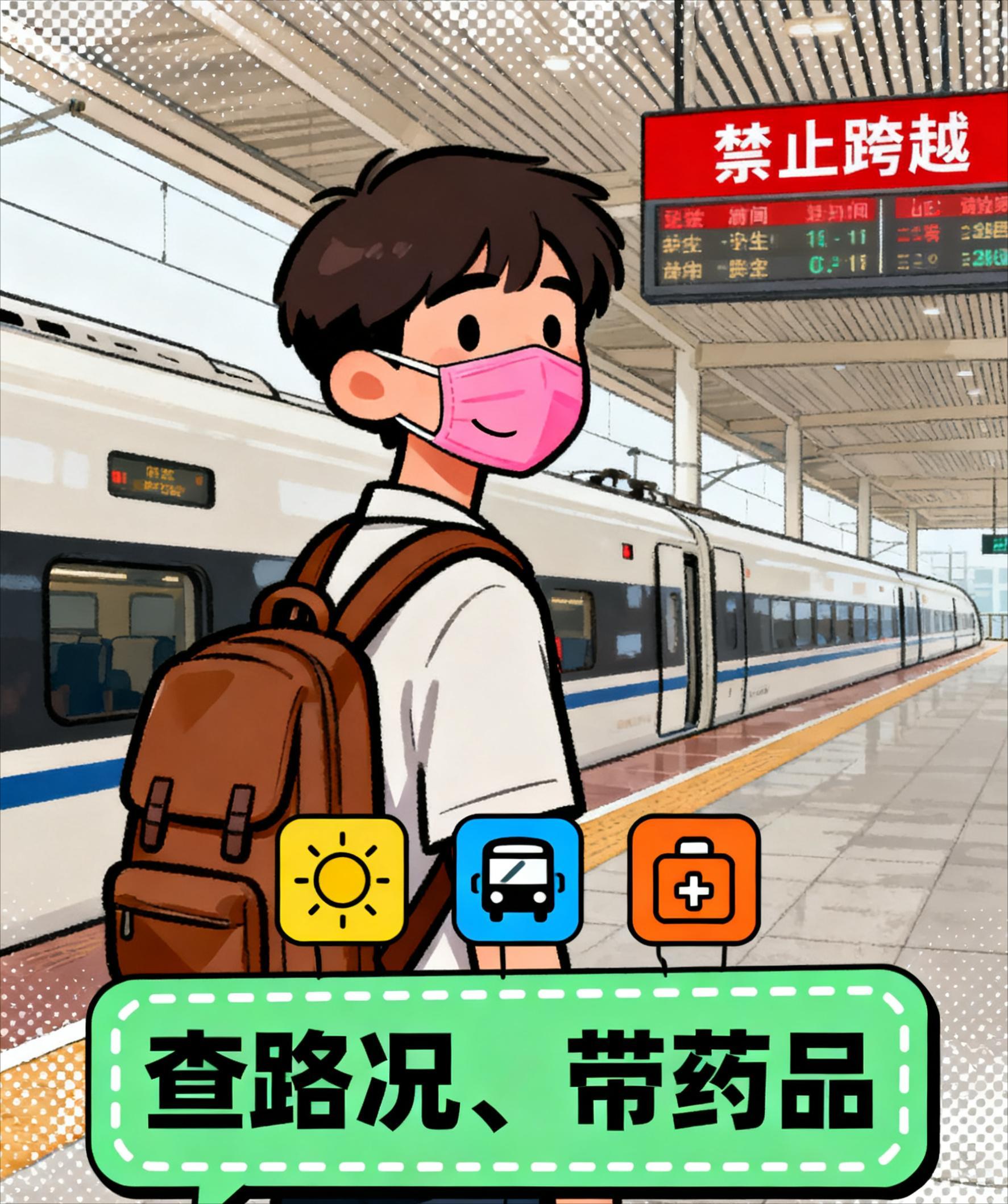 途中 “防护”:乘坐高铁、飞机等公共交通时,保持口罩规范佩戴(尤其人群密集时段),避免用未清洁的手触碰口鼻;随身携带学生证、病历摘要,若突发不适,可快速向乘务人员说明自身健康情况,必要时联系当地急诊机构。