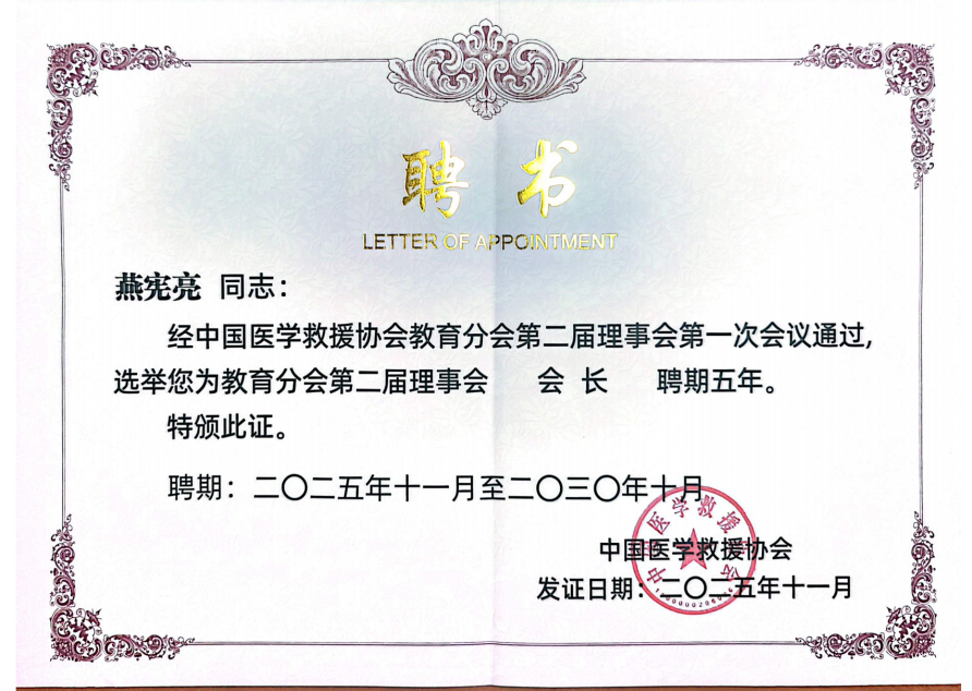 燕宪亮教授当选该分会会长,彰显了学院急救医学教育的深厚积淀。不仅提升了我校在全国急救医学领域的影响力,更为学院深化学科建设、加强跨校协作搭建更高平台,为学院急救教育事业发展注入新动力。