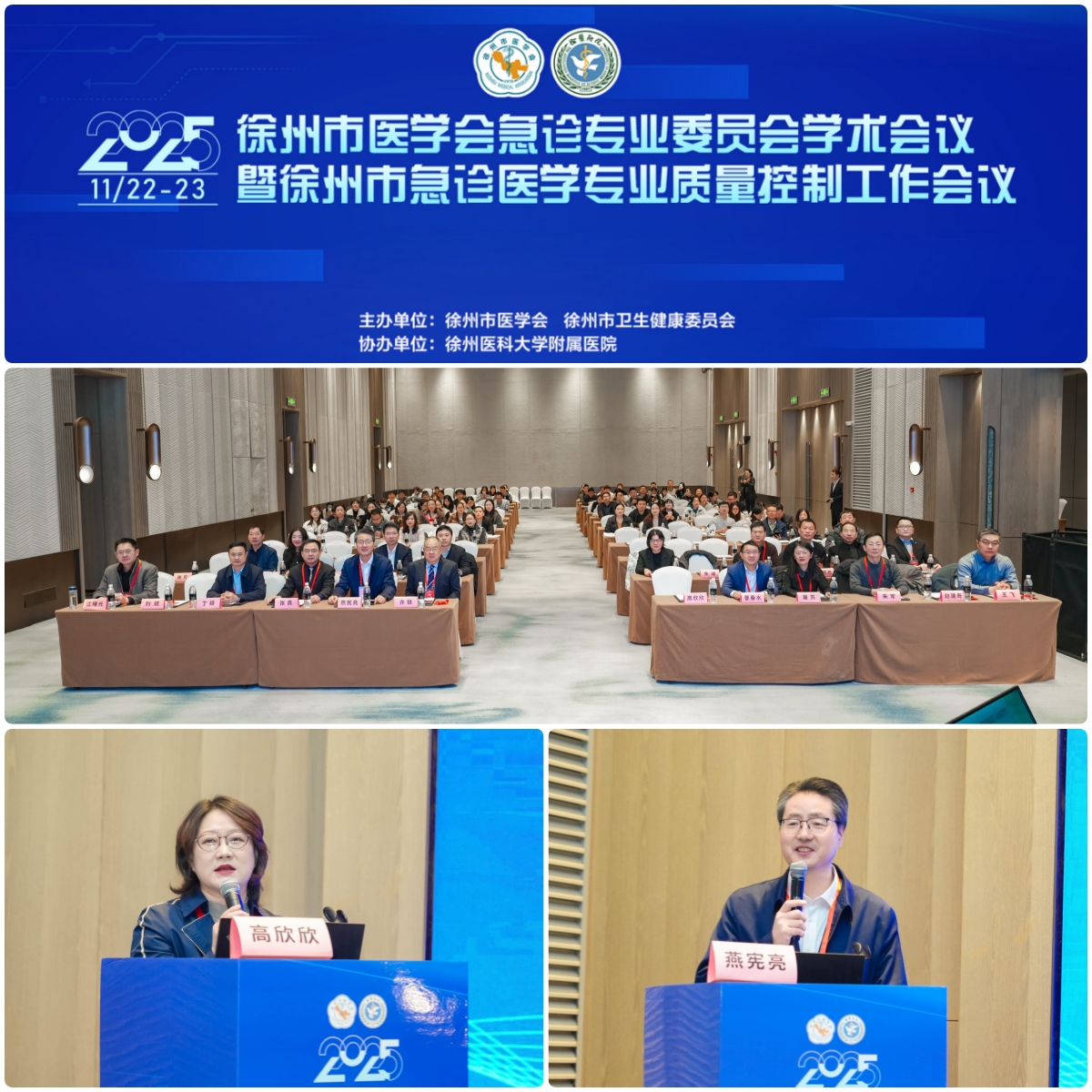 11月23日,“2025年徐州市医学会急诊医学专业委员会学术会议暨徐州市急诊医学专业质量控制会议”顺利召开,徐州市医学会副理事长兼秘书长高欣欣到会祝贺。省内外多位专家学者分别就急诊核心技能提升、临床指南更新解读、典型病例多维度分析等内容作专题分享,既有前沿理论的深度阐释,又有临床实战经验的系统总结,为参会者呈现了一场高质量学术盛宴。23日同期举办“2025 年淮海经济区急诊专科联盟理事会暨学术会议”,汇聚 80 余家成员单位参会代表,淮海经济区急诊医学领域专家学者作区域联动建设专题报告,为深化区域急诊协同救治机制、提升整体救治能力凝聚共识。