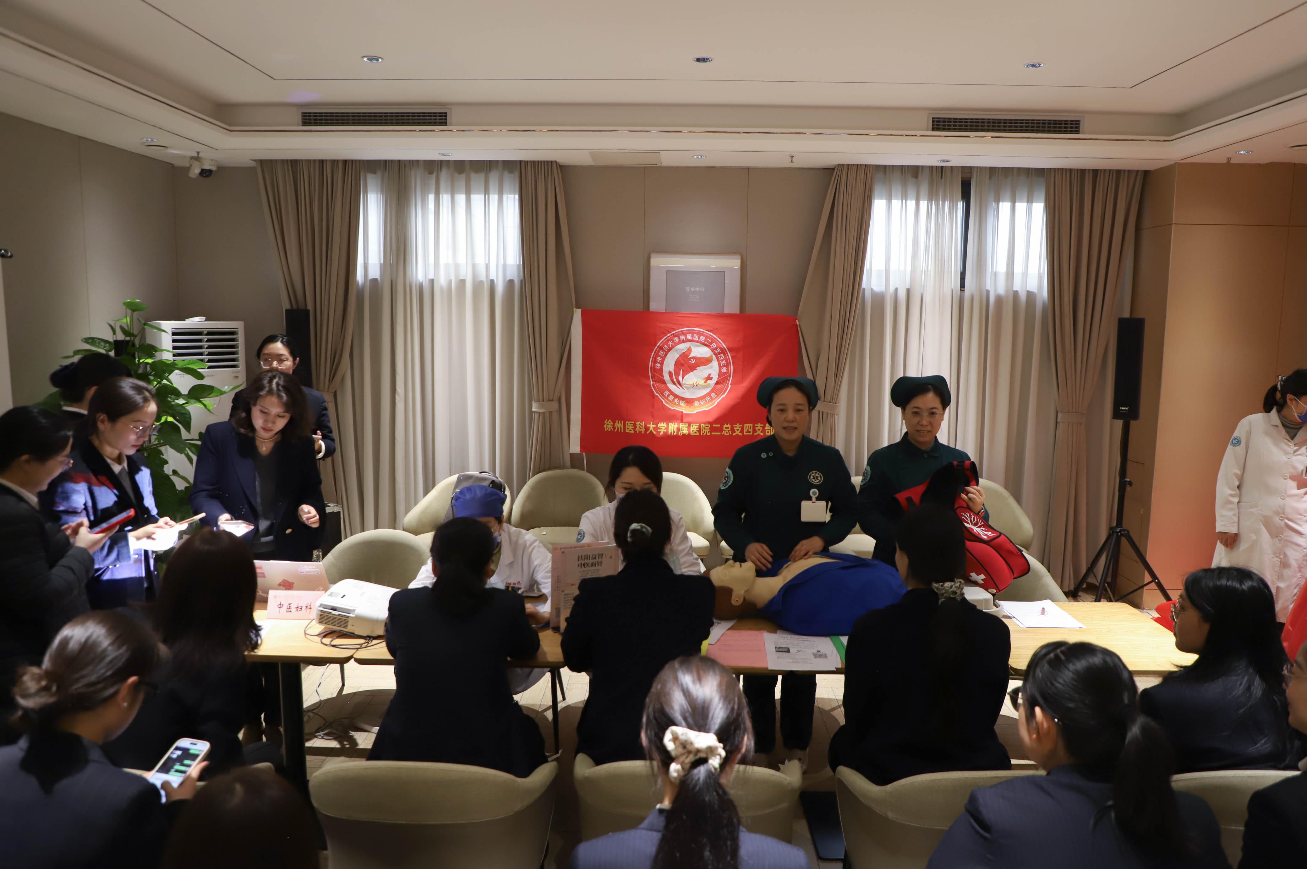 3月5日学雷锋纪念日当天上午,第二临床医学院急救与救援医学系、徐医附院急诊医学科教师团队走进中国银行徐州支行,开展“关爱巾帼学雷锋·医路同行护健康”主题公益活动。学系的省级样板党支部、徐医附院急诊医学科的国家级样板党支部,充分发挥基层党组织战斗堡垒作用,由急救与救援医学系教师、急诊与神经内外总支四支部副书记徐华带队,为银行女性职工送上了一堂干货满满的急救科普课。